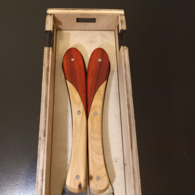 Duo de couteaux dont le cœur ne fait qu'un lorsqu'ils sont réunis.